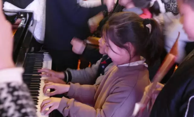 隨后,觀眾們紛紛上臺和趙嘵生教授合影、獻花,擁擠的場面幾乎失控。更有一些琴童,膽大者爬上三角琴彈奏起來,美美地享受了海倫鋼琴的聲音??磥磉@批孩子必定會成為海倫鋼琴的小粉絲!