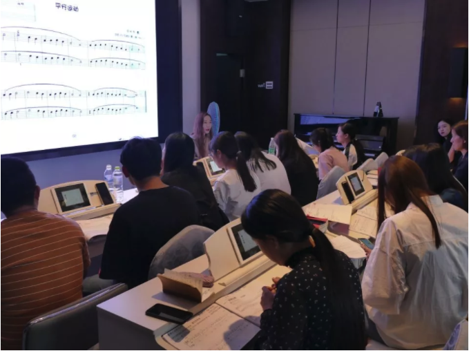 本次課程教學(xué)安排非常緊湊,兩位老師按照中央音樂(lè)學(xué)院編輯出版的教材,耐心細(xì)致地為學(xué)員們逐音逐句地進(jìn)行講解,不僅教會(huì)學(xué)員們掌握每首樂(lè)曲的譜面,還教授了如何引導(dǎo)不同年齡段的孩子學(xué)習(xí)音樂(lè)和鋼琴。
