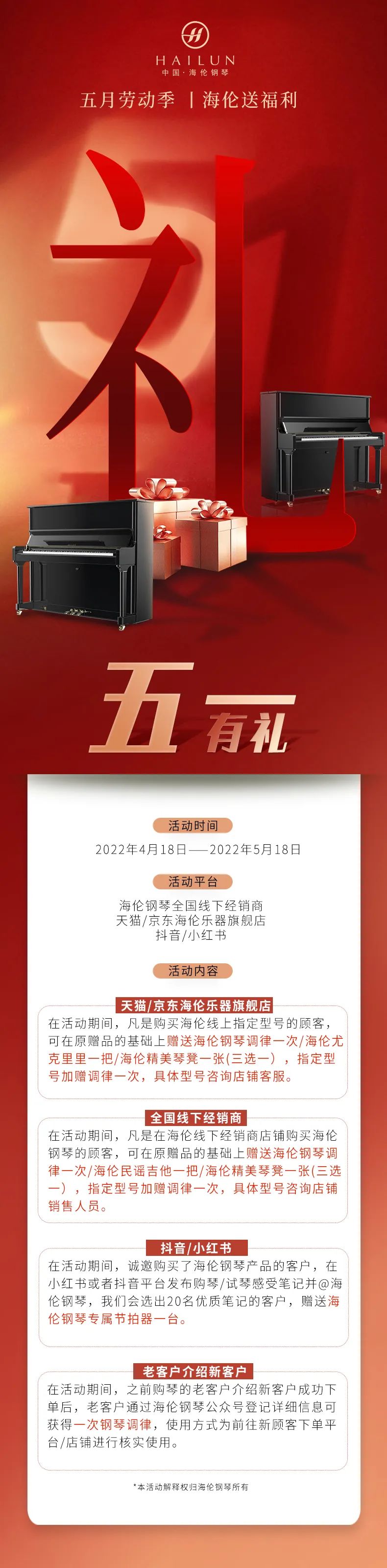 4. 獲得的調(diào)律福利僅對(duì)應(yīng)琴號(hào)可享用,資格轉(zhuǎn)讓無(wú)效。