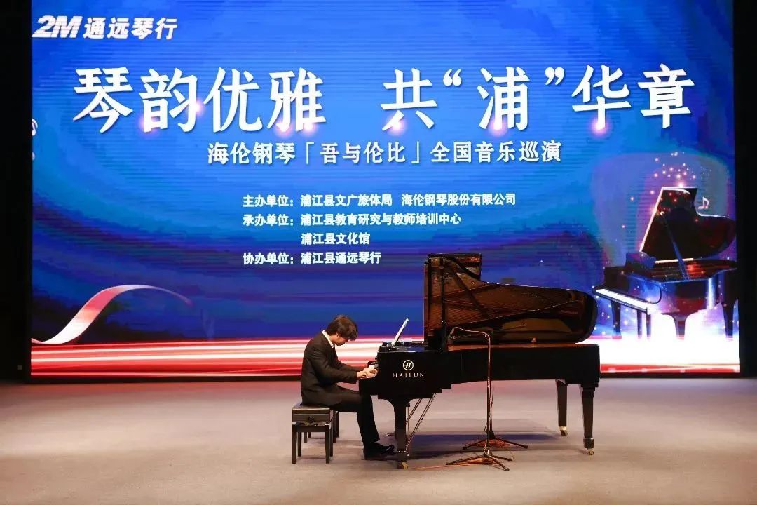 藝術能陶冶人的情操,培養(yǎng)美好的道德品質。在雙減政策下,國家大力提倡學校藝術教育發(fā)展,強調藝術教育對學生的重要性。在全省人民喜迎亞運之際,浦江縣文廣旅體局、海倫鋼琴股份有限公司主辦,浦江縣教育研究與教師培訓中心、浦江縣文化館承辦,浦江縣通遠琴行協(xié)辦的“琴韻優(yōu)雅,共“浦”華章——海倫鋼琴「吾與倫比」全國音樂巡演楊磊教授及學生化子忻師生音樂會”在浦江華麗開演。